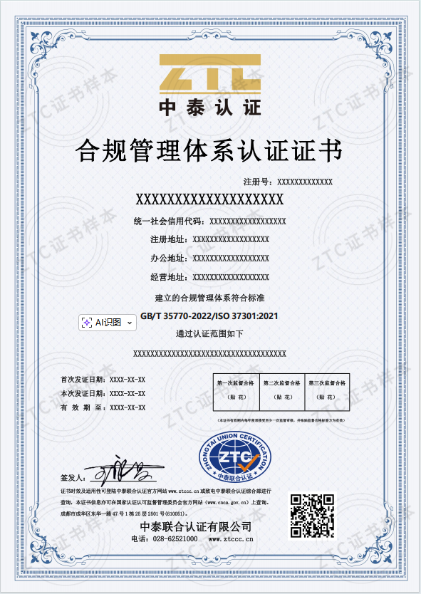 認證標準:GB/T 35770-2022/ISO 37301:2021《合規管理體系 要求及使用指南》
