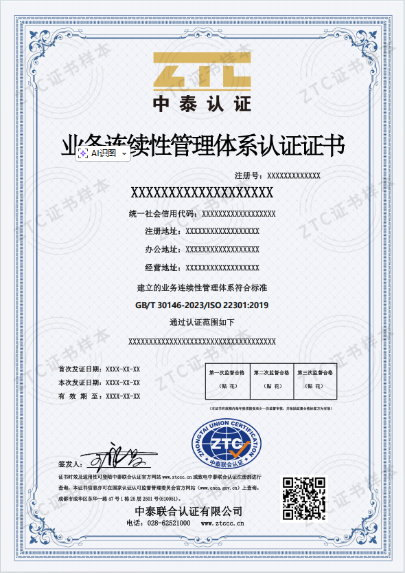 認證標準:GB/T 30146-2023 / ISO 22301:2019《安全與韌性 業務連續性管理體系 要求》