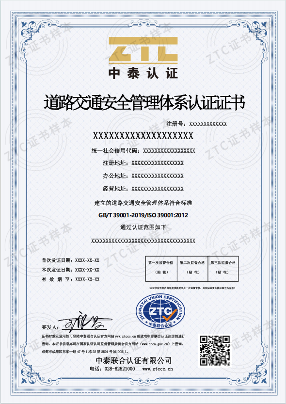 認(rèn)證標(biāo)準(zhǔn):GB/T 39001-2019 / ISO 39001:2012《道路交通安全管理體系 要求及使用指南》