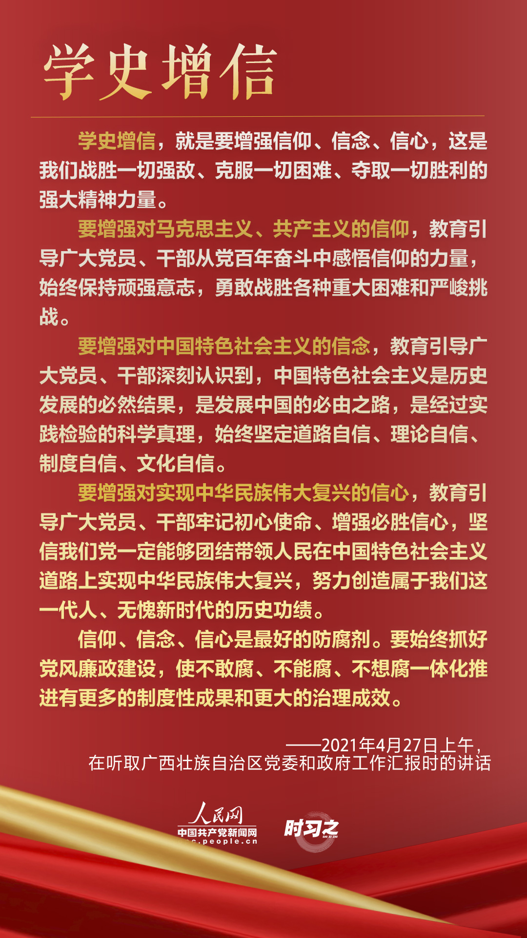 黨史學習教育開展以來,習近平總書記前往多地進行考察并發表重要講話,就黨史學習教育中如何做到“學史明理、學史增信、學史崇德、學史力行”提出了學習路徑與方法。